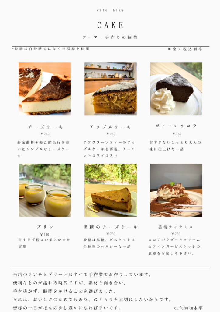 ランチやケーキは全て手作り。一口食べたときにやっぱり伝わる背景。そこに喜びがあります。